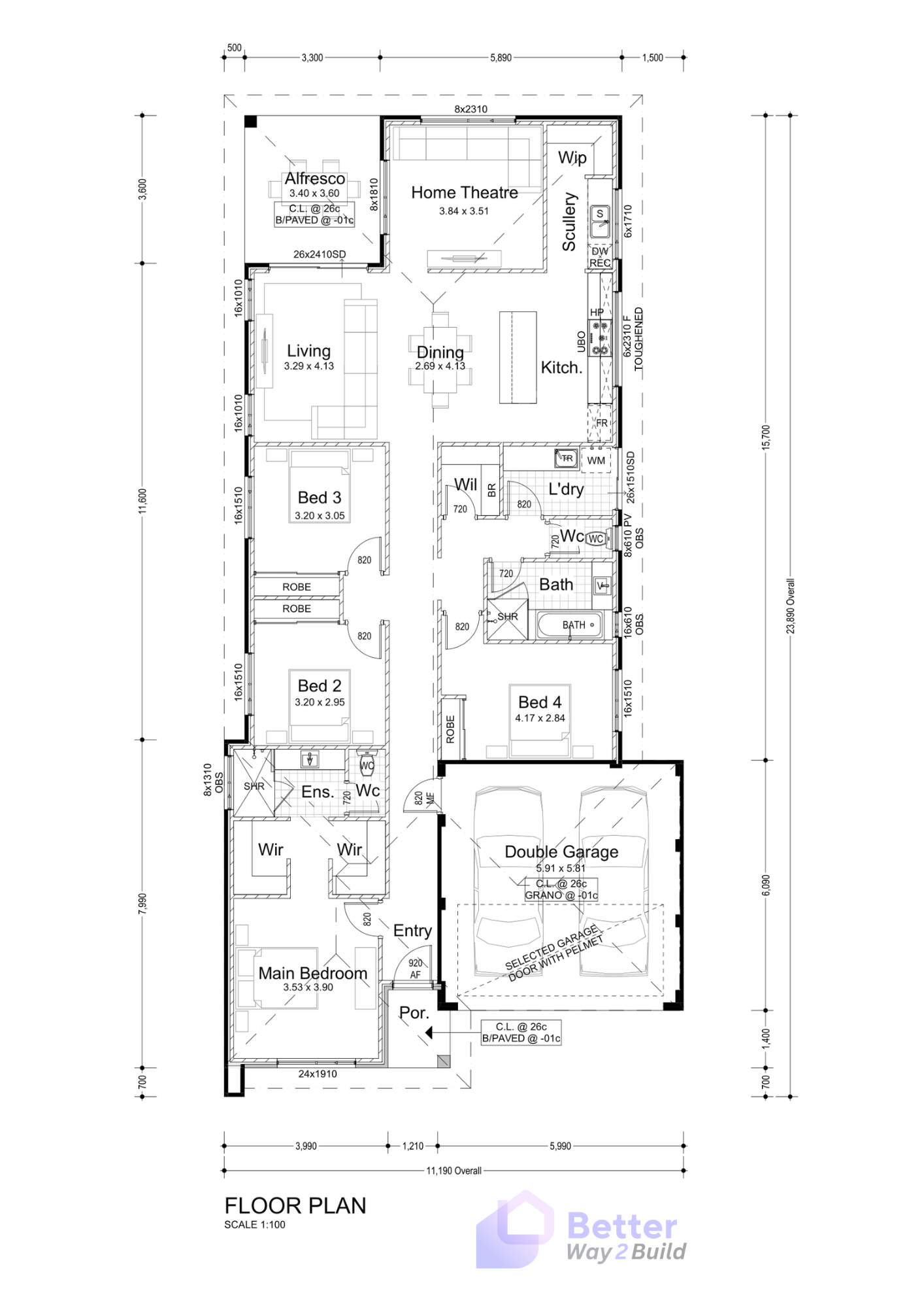 Beech is a sophisticated 4 bedroom family home with 2 bathroom, 2 garage. A home theater at the rear, an open living space, dining, and kitchen with scullery and walk-in-pantry. Enjoy a covered alfresco at the rear and a well appointed master bedroom situated at the front of the house.