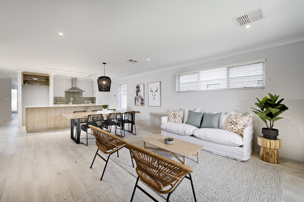 Chateaux is a idyllic 3 bedroom family home, with 2 bathroom, a garage. An open living space, with dining and kitchen situated at the rear of the house. A well appointed master bedroom at the center.