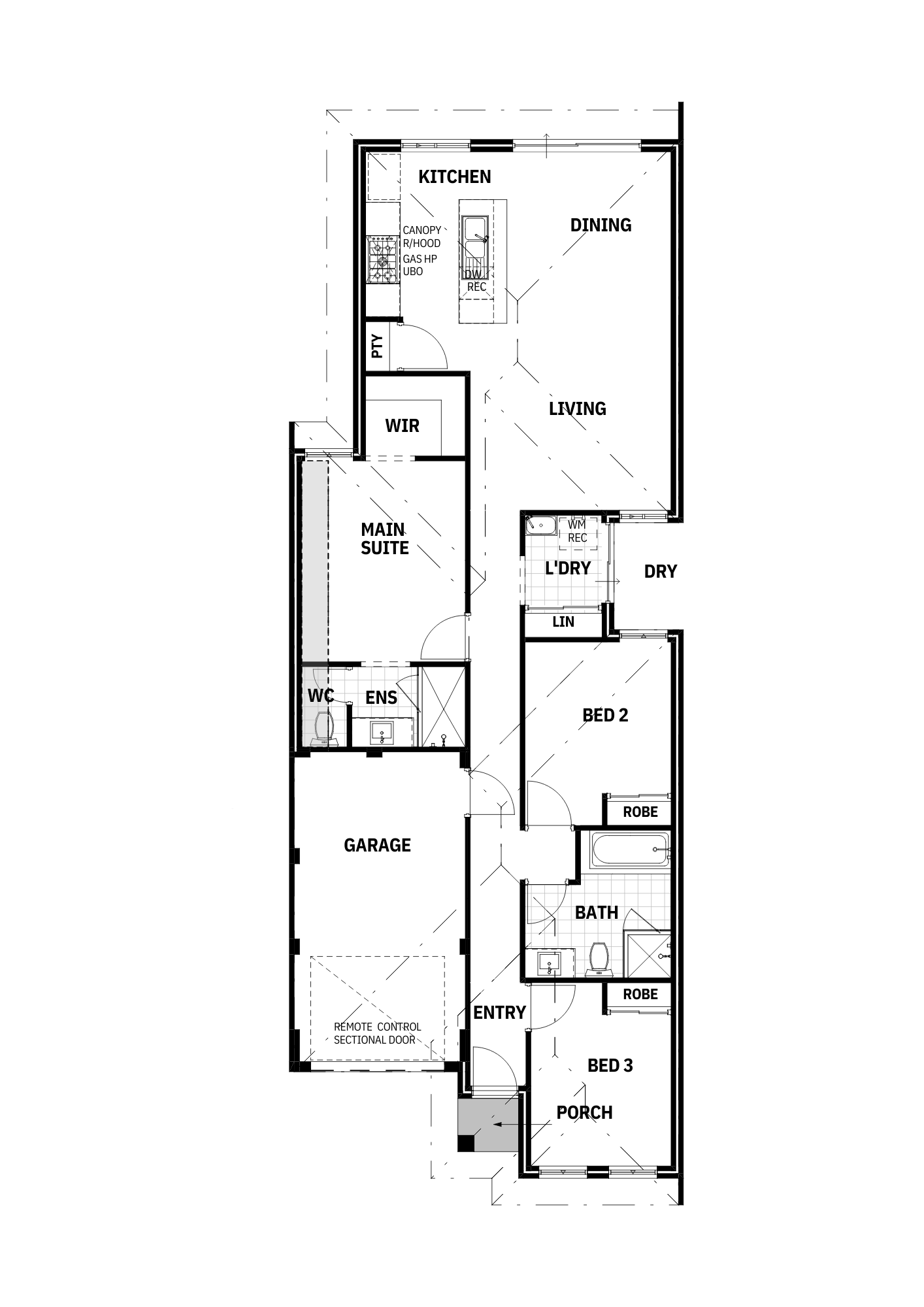 Flex is an pleasing family home with 3 bedroom, 2 bathroom, 1 garage. An open living space with kitchen and dining with a well appointed master bedroom at the center of the house.