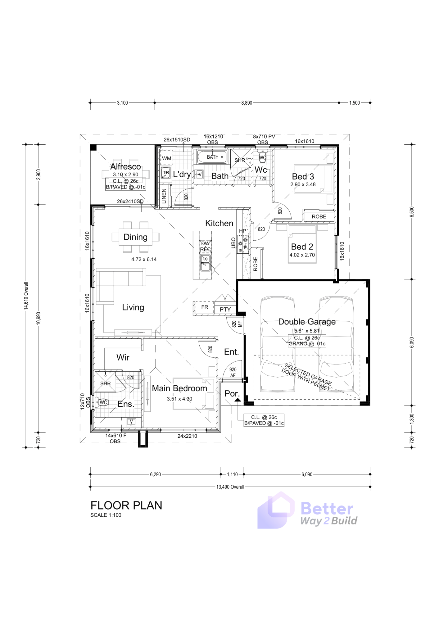Hickory is a humble 3 bedroom family home, with 2 bathroom, 2 garage. An open living space with kitchen and dining. A well appointed master bedroom in front of the house and a covered alfresco at the rear.