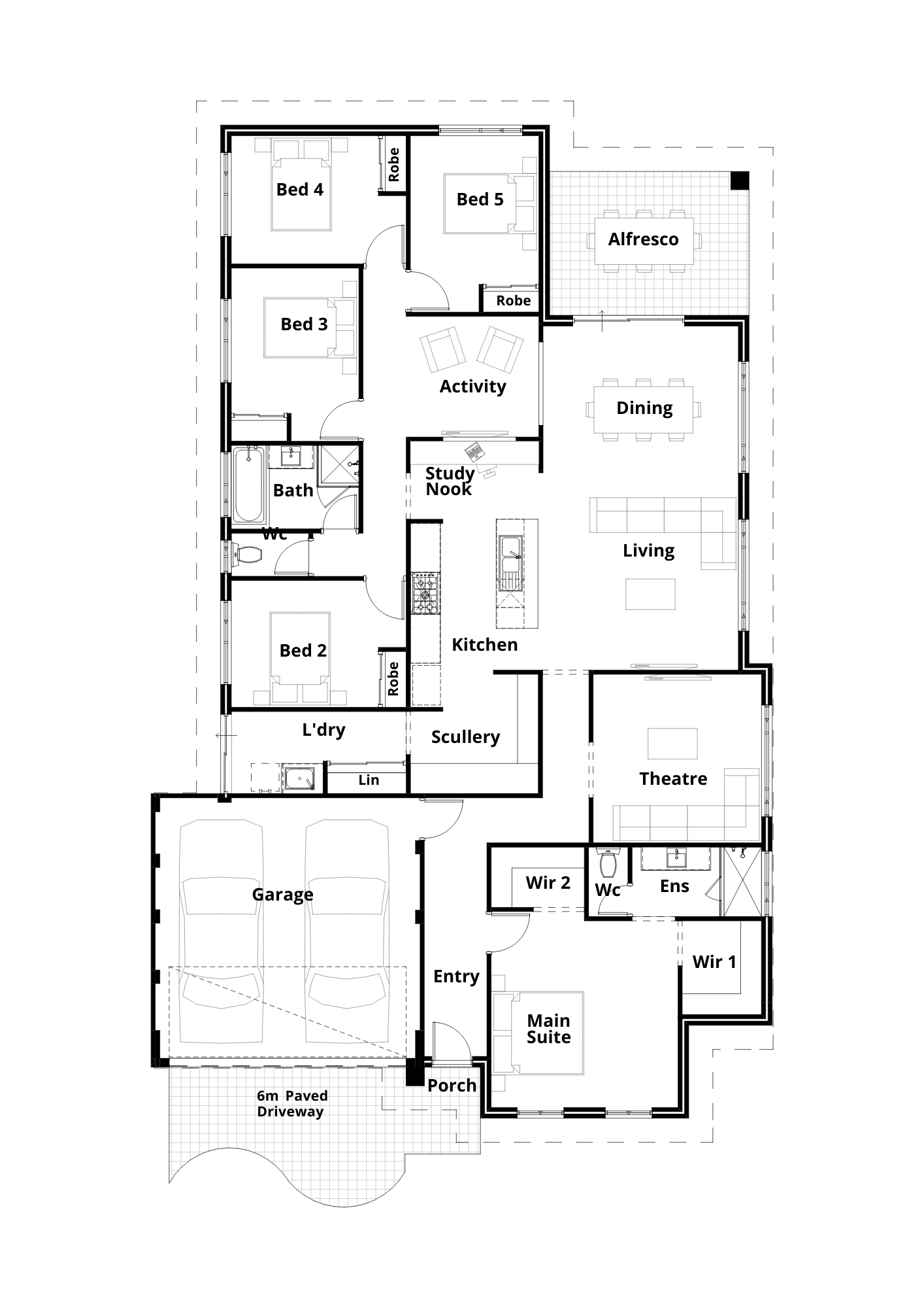 Status is a massive 5 bedroom family home, with 2 bathroom, 2 garage. A home theatre, activity room, study nook at the center, and an open living space, with dining and kitchen plus scullery. Enjoy a covered alfresco at the rear, with a well appointed master bedroom at the front of the house.